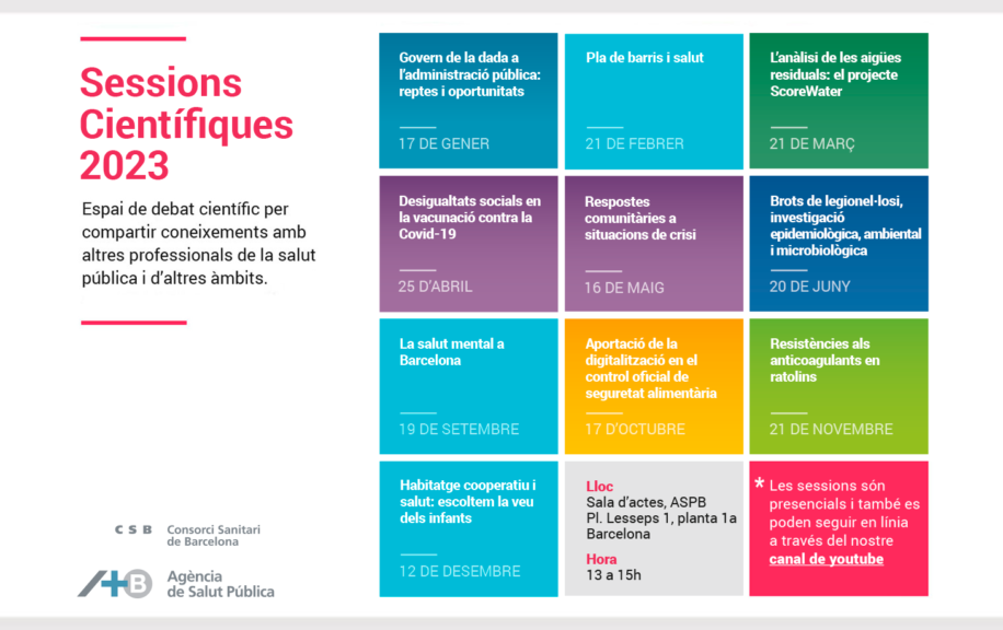 Organitzem periòdicament (el tercer dimarts de cada mes, de manera general) sessions científiques obertes. Aquest espai de debat científic esdevé una magnífica oportunitat per compartir coneixements, dubtes i experiències amb altres professionals de la salut pública i d’àmbits relacionats.