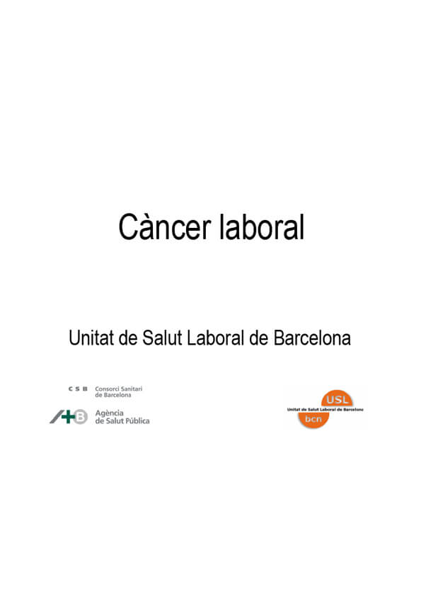 Material informatiu sobre el càncer laboral en format de diapositives. En els països industrialitzats, el treball està lligat causalment al 2-8% dels càncers; la xifra és superior en població treballadora exposada.