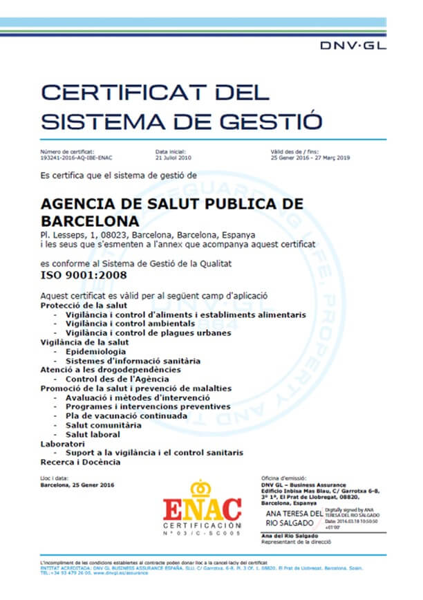 Certificat del Sistema de Qualitat ISO 9001:2008