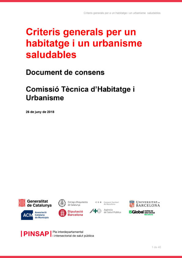 Criteris generals per un habitatge i urbanismes saludables. Document de consens.