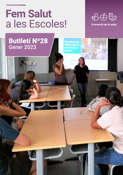 S’ha publicat el Butlletí número 28 de Fem Salut a les escoles!, en aquest mes de gener de 2023. En aquest butlletí us informem de la nova guia de “l’alimentació saludable en la primera infància” i del premi atorgat per l’estratègia Naos al programa de Menjadors escolars més sans i sostenibles. Us expliquem també l’experiència d’alumnat de Programes de Formació i Inserció (PFI) que han participat en una escola de salut i d’alumnat de primer primària que ha participat del programa Bon dia Somriu!
