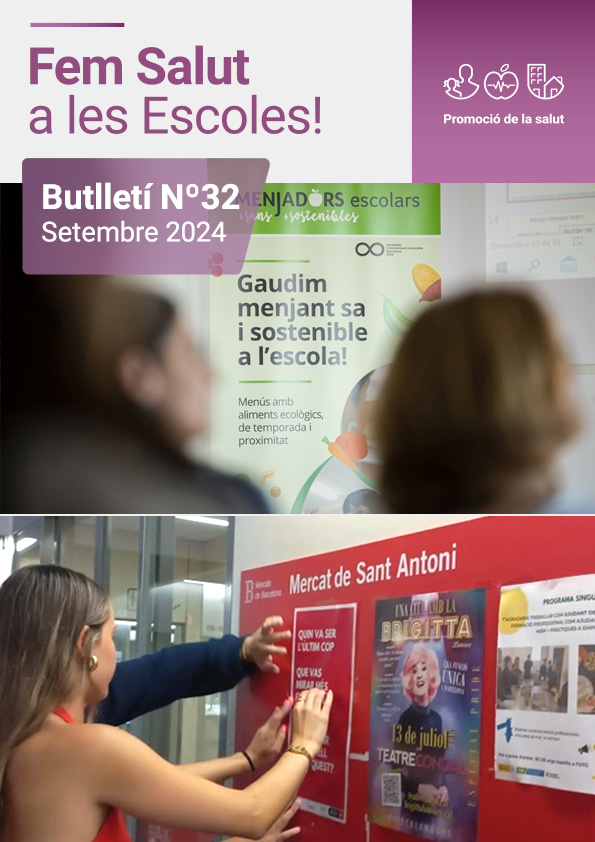 S’ha publicat el Butlletí número 32 de Fem Salut a les escoles! En aquest número es recorda la possibilitat d’inscriure’s al “Cara i Creu“, nou programa de prevenció dels riscos i danys associats al joc d’apostes i als videojocs. S’informa de les noves convocatòries per participar als programes “Menjadors escolars més sans i sostenibles – MEMSS” i “Classe sense fum”, i sobre “Pont Alimentari”, un projecte impulsat per l’Ajuntament de Barcelona per a l’aprofitament dels excedents alimentaris dels centres escolars. També s’explica una experiència amb alumnat del barri de Sant Antoni per a la conscienciació de l’ús abusiu de les pantalles.