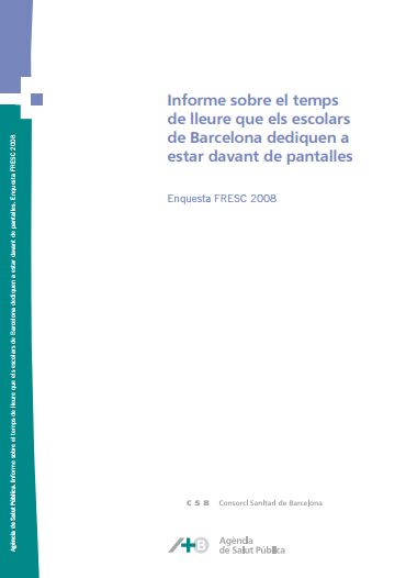 Informe sobre el temps de lleure que els escolars de Barcelona dediquen a estar davant de pantalles. FRESC 2008