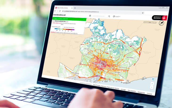 Aquesta eina permet consultar els nivells de contaminació de l’aire a la ciutat per a cada tram de carrer. Les dades mostren l’exposició anual a partícules PM10, partícules PM2,5 i NO2, els principals contaminants que afecten a salut dels veïns i veïnes de Barcelona. L’Ajuntament de Barcelona i l’Agència de Salut Pública de Barcelona elaboren anualment els mapes de qualitat de l’aire de la ciutat, a partir del model d’immissions de l’Ajuntament de Barcelona i de les mesures reals de la xarxa de vigilància, de la unitat mòbil de control atmosfèric i de campanyes amb difusors passius de NO2.
