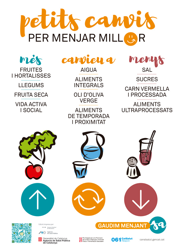 Pòster informatiu sobre els petits canvis per poder portar una bona alimentació.