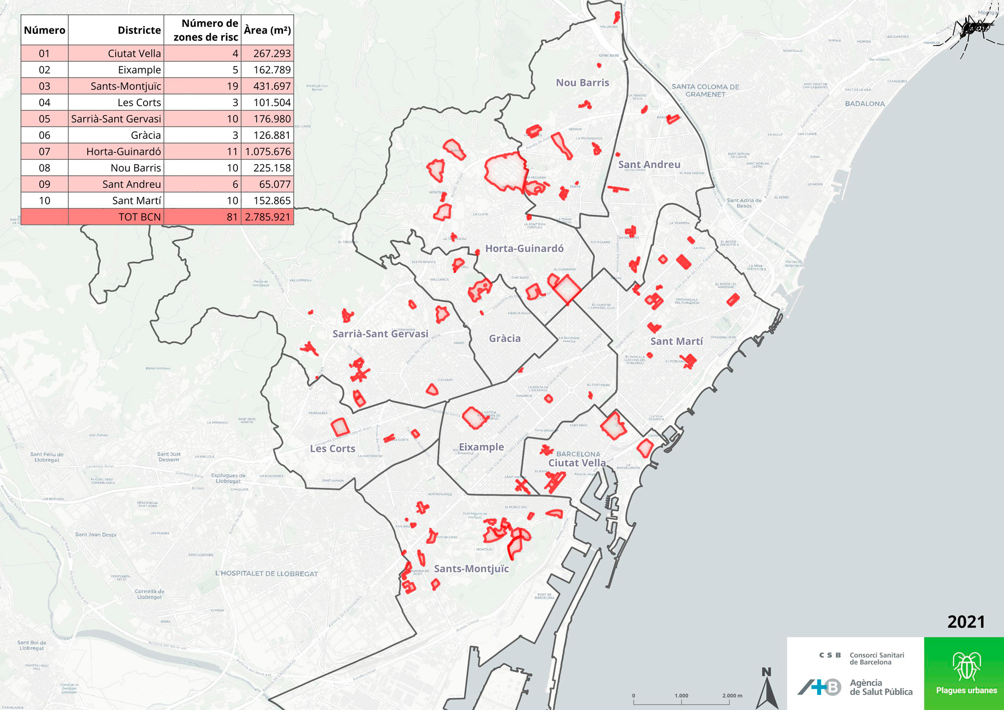 Així, l’any 2021 es van seleccionar i fer un seguiment continuat durant la temporada a 81 zones de risc, amb més de 270 hectàrees distribuïdes en els 10 districtes de la ciutat.