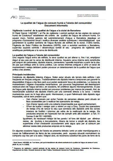 La qualitat de l’aigua de consum humà a l’aixeta del consumidor