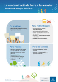 Millorar la qualitat de l’aire a Barcelona, i en concret a les escoles, és una prioritat de salut pública. En aquest document divulgatiu fem un resum de l’informe “Recomanacions per reduir la contaminació de l’aire exterior a les escoles de Barcelona [PDF]“, que va elaborar l’Agència de Salut Pública de Barcelona (ASPB), en col·laboració amb el Consorci d’Educació de Barcelona, els instituts de recerca IDAEA-CSIC, ICTA-UAB i ISGlobal, l’Ajuntament de Barcelona i altres agents implicats. També podeu trobar les recomanacions en format d’infografia [PDF].