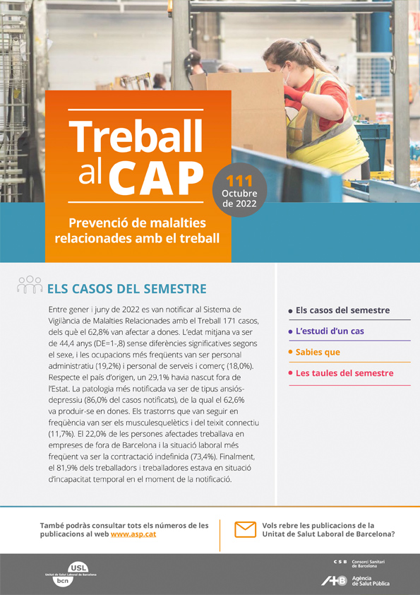 Treball al CAP. Prevenció de malalties relacionades amb el treball. Butlletí 111