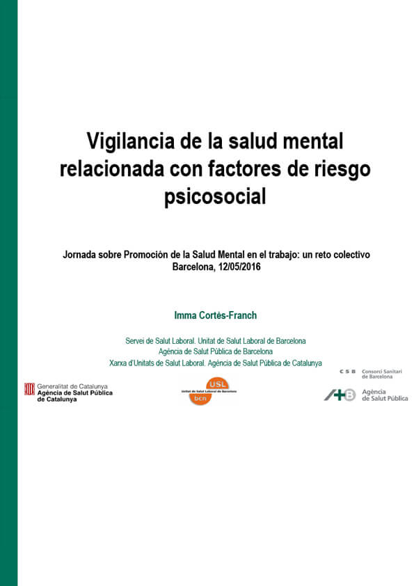 salut mental relacionada amb els factors de risc psicosocial, en el marc de la Jornada sobre Promoción de la Salud Mental en el trabajo: un reto colectivo (maig 2016).