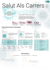 La evaluación del programa «Salut als Carrers» se ha basado en diferentes subestudios desarrollados en los barrios del Poblenou, Sant Antoni y Horta para evaluar los efectos medioambientales y en la salud de las Supermanzanas. Se han utilizado métodos cuantitativos y cualitativos para obtener diversas medidas de la población de los barrios intervenidos: medidas ambientales, de calidad del aire, de actividad física, de salud, y la valoración global de la Supermanzana.