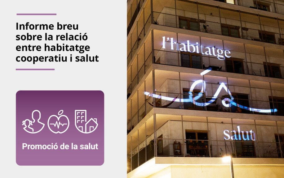 En el marc del projecte de recerca “Habitatge cooperatiu i salut” l’Agència de Salut Pública de Barcelona (ASPB) ha fet diversos estudis per avaluar si els models cooperatius d’habitatge en cessió d’ús de Catalunya poden millorar la salut i el benestar de les persones residents. Els resultats mostren que aquest model de propietat col·lectiva d’habitatge té efectes positius en la salut física, mental, emocional i comunitària. Es constata així, l’evidència que les condicions de l’habitatge són un factor determinant de la salut.