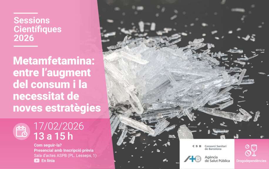 L’Agència de Salut Pública de Barcelona (ASPB) us convida a la sessió científica “Metamfetamina: entre l’augment del consum i la necessitat de noves estratègies”.