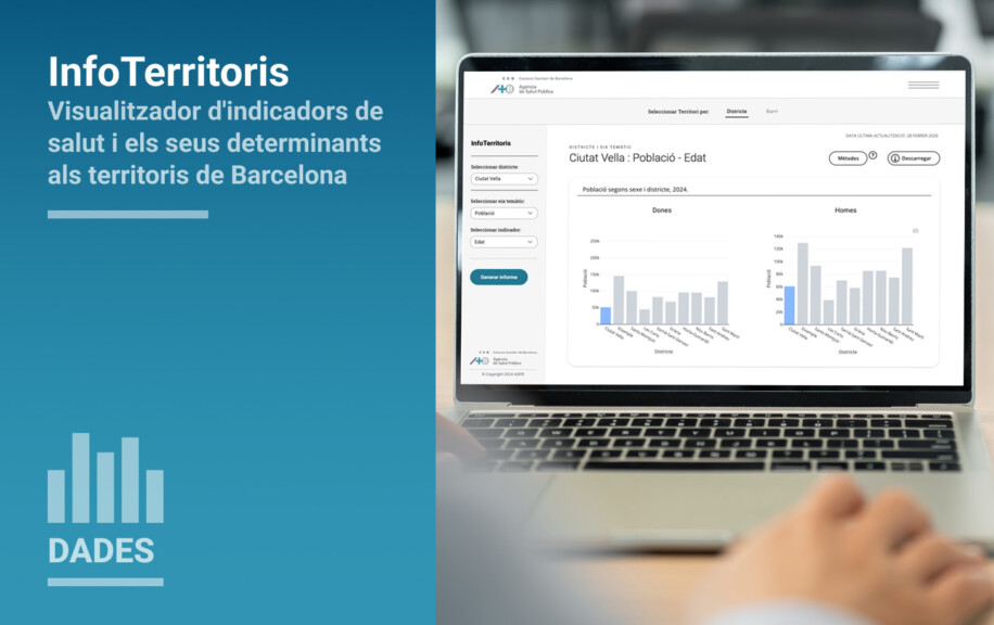 L’Agència de Salut Pública de Barcelona (ASPB) ha publicat InfoTerritoris, una nova eina web que mostra indicadors de salut, determinants socials i dades de l’entorn físic per districtes i barris. La plataforma inclou visualitzacions interactives, com mapes i figures, que faciliten la comparació de cada territori amb el seu districte i amb la ciutat.