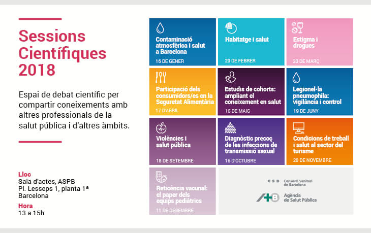 Al llarg de tot l’any es convoquen trobades científiques mensuals que serveixen per actualitzar coneixements entre persones expertes de l’àmbit de la salut pública. L’ASPB organitza aquestes sessions, de dues hores de durada, on la participació del públic assistent és molt important. Hi ha, a més, la possibilitat de seguir-les online, i de recuperar l’enregistrament a través del web. Aquest espai de debat científic està pensat per a professionals i personal en formació, i abasta temàtiques molt diverses, des de les desigualtats, la seguretat alimentària, treball i salut, habitatge i salut, vacunacions, salut ambiental, etc. En el calendari de 2018 hi ha el detall de les deu sessions que es convoquen aquest any, i no es descarta de programar-ne alguna extra segons ho requereixi l’evolució dels reptes de salut pública a Barcelona.